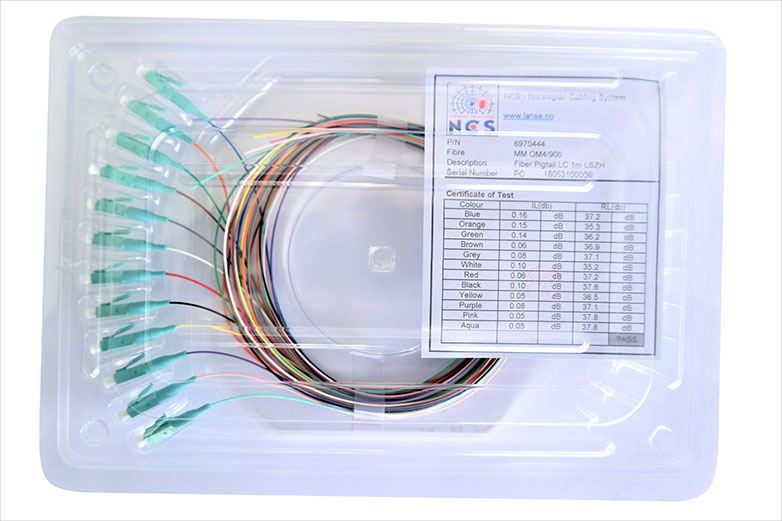 - LC/UPC Sliping gir mindre tap - Fast kledning 900µm - Strippelengde 10cm - Praktisk 12stk. forpakning med forskjellige farger