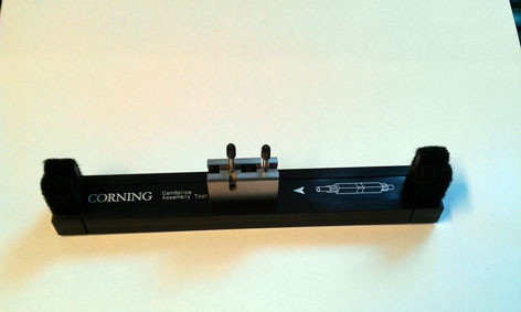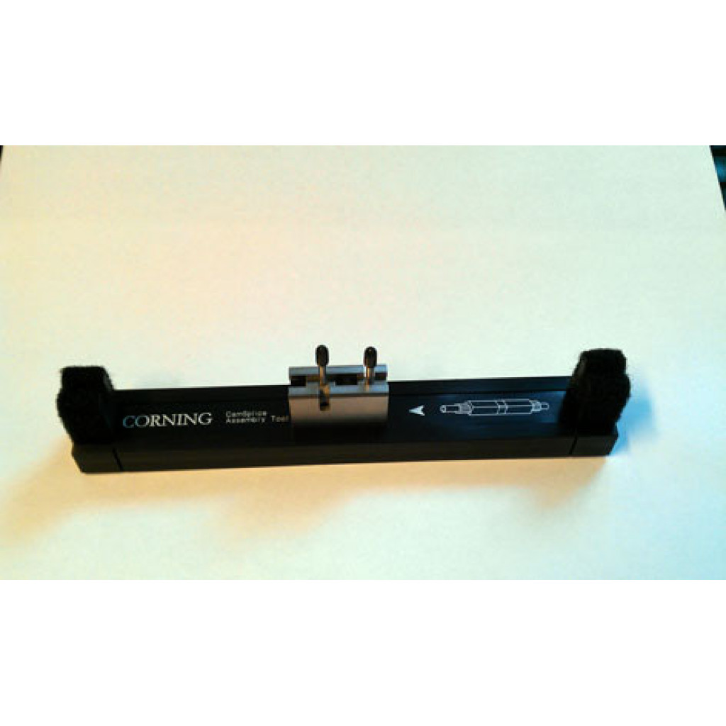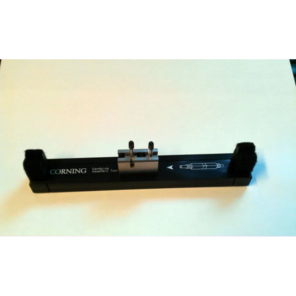 Installasjonsverktøy for CamSplice som holder både den mekaniske skjøten og begge fibrene på plass under skjøting av fiber.