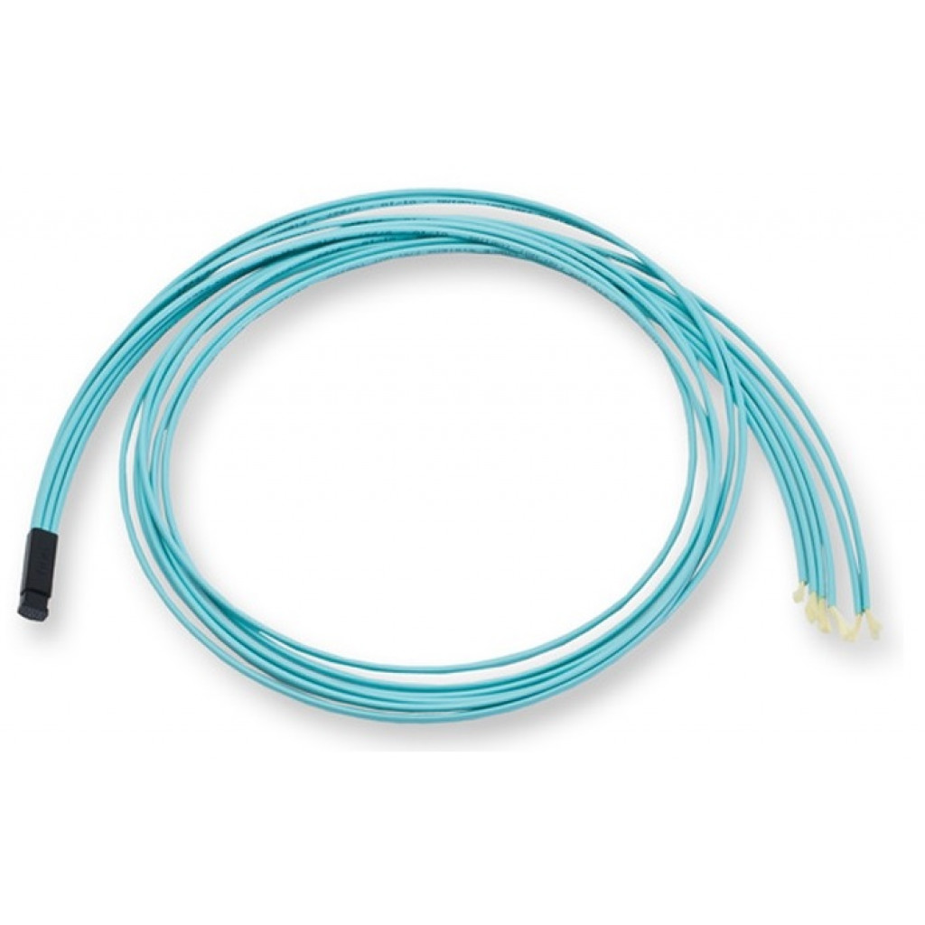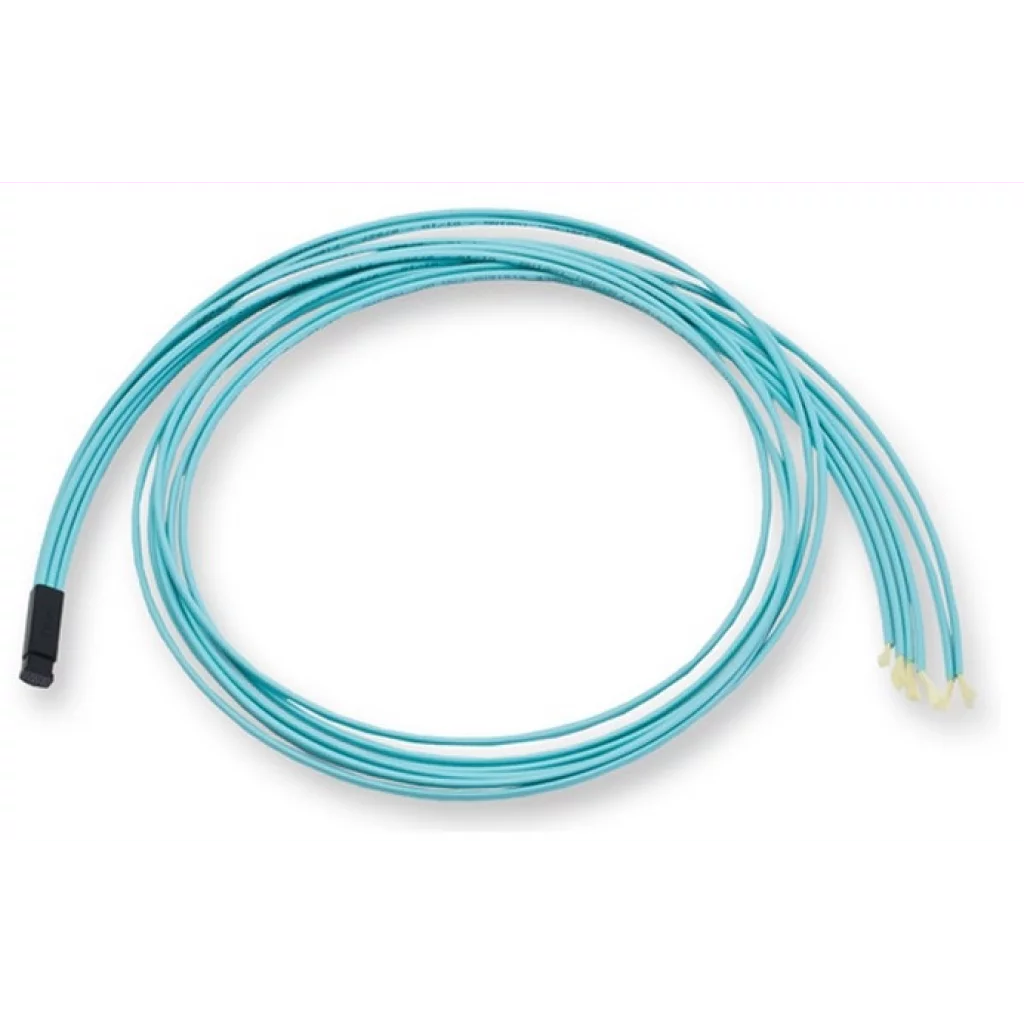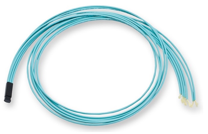 Corning Spider fan-out sett gir ekstra beskyttelse på installert fiberkabel i turkis farge som symbolisere 50/125 OM3/4 fiber.