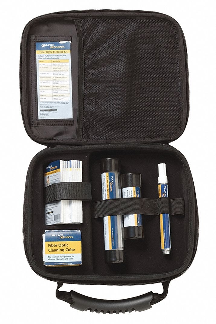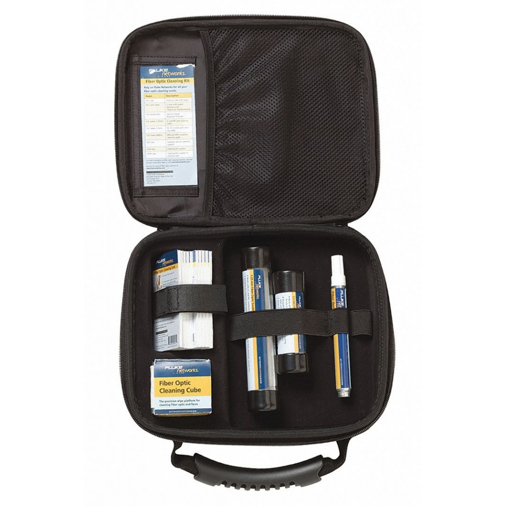 Fiber rensesett med bæreveske for rensing av opp til 50 fiberender inneholder 10 stk. rensekort, pen med renseveske, 50 stk. rensepinner 2,5mm for ST, SC og FC, 25stk. rensepinner 1,25mm for LC & bæreveske.