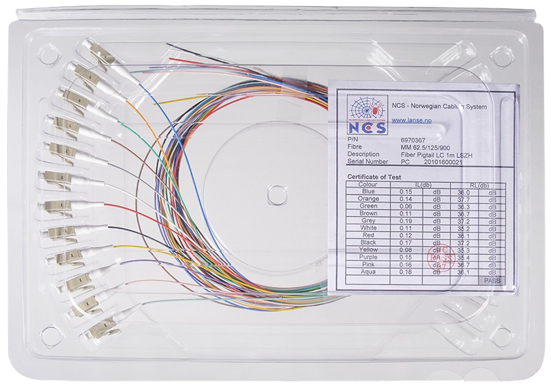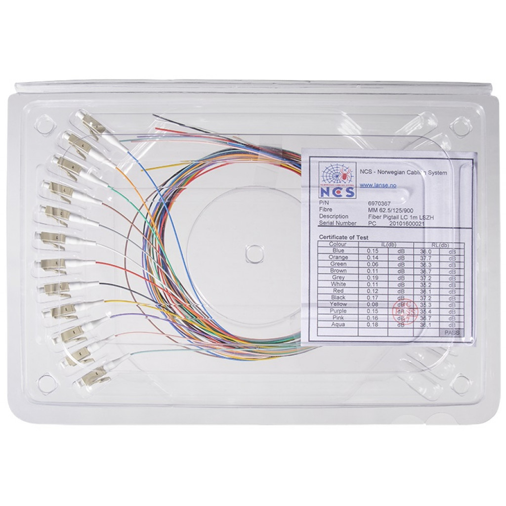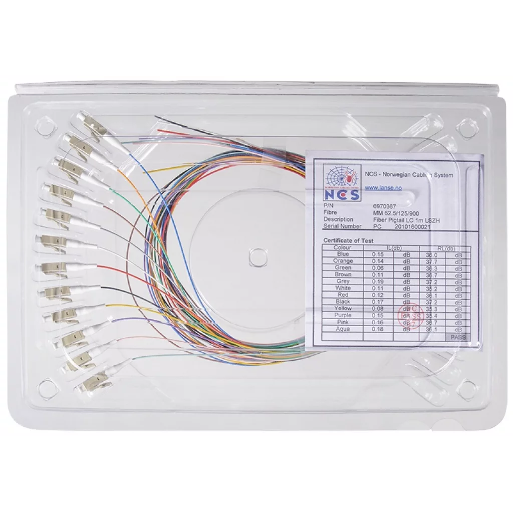 - LC/UPC Sliping gir mindre tap - Fast kledning 900µm - Strippelengde 10cm - Praktisk 12stk. forpakning med forskjellige farger