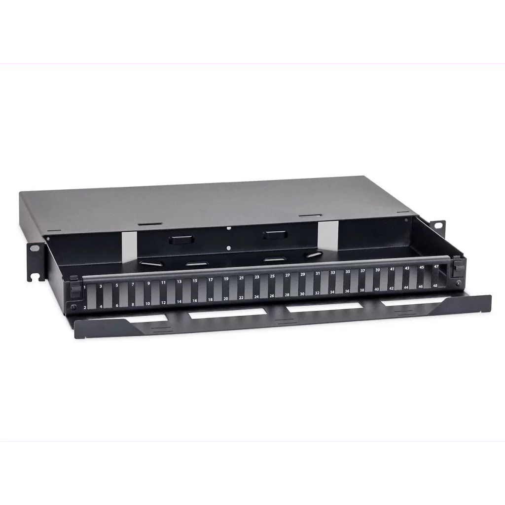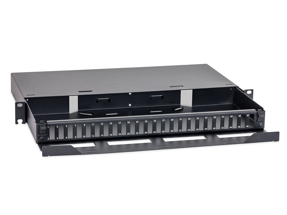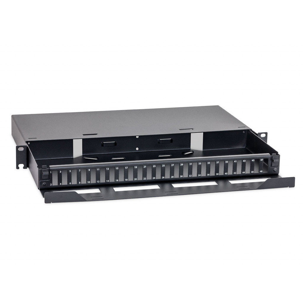 NCS Fiberskuff er en uttekkbar ODF. - 100% høyere tetthet - Stort merkefelt - Forenklet 19" montering Produktet er godkjent for benyttelse i NCS - Norwegian Cabling System.