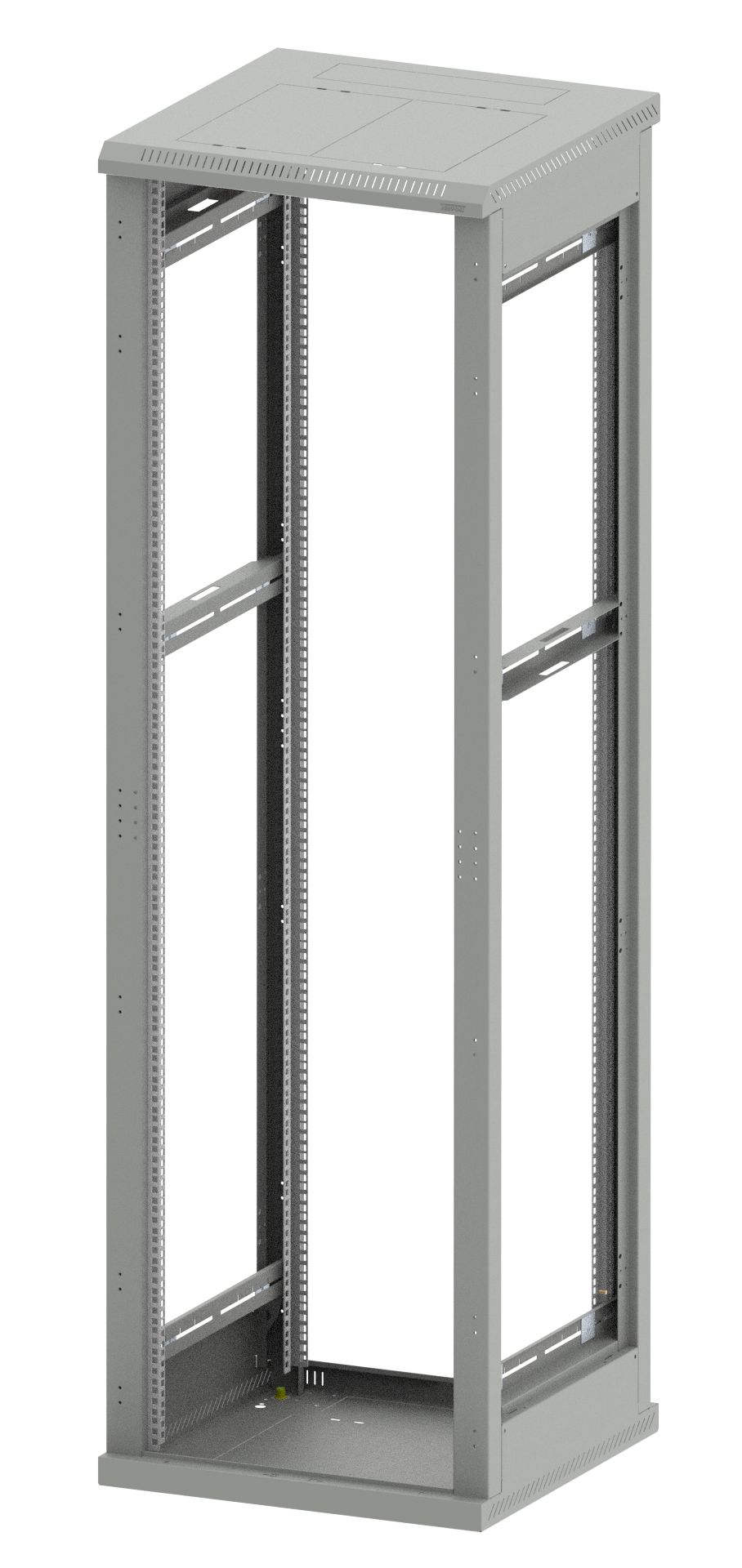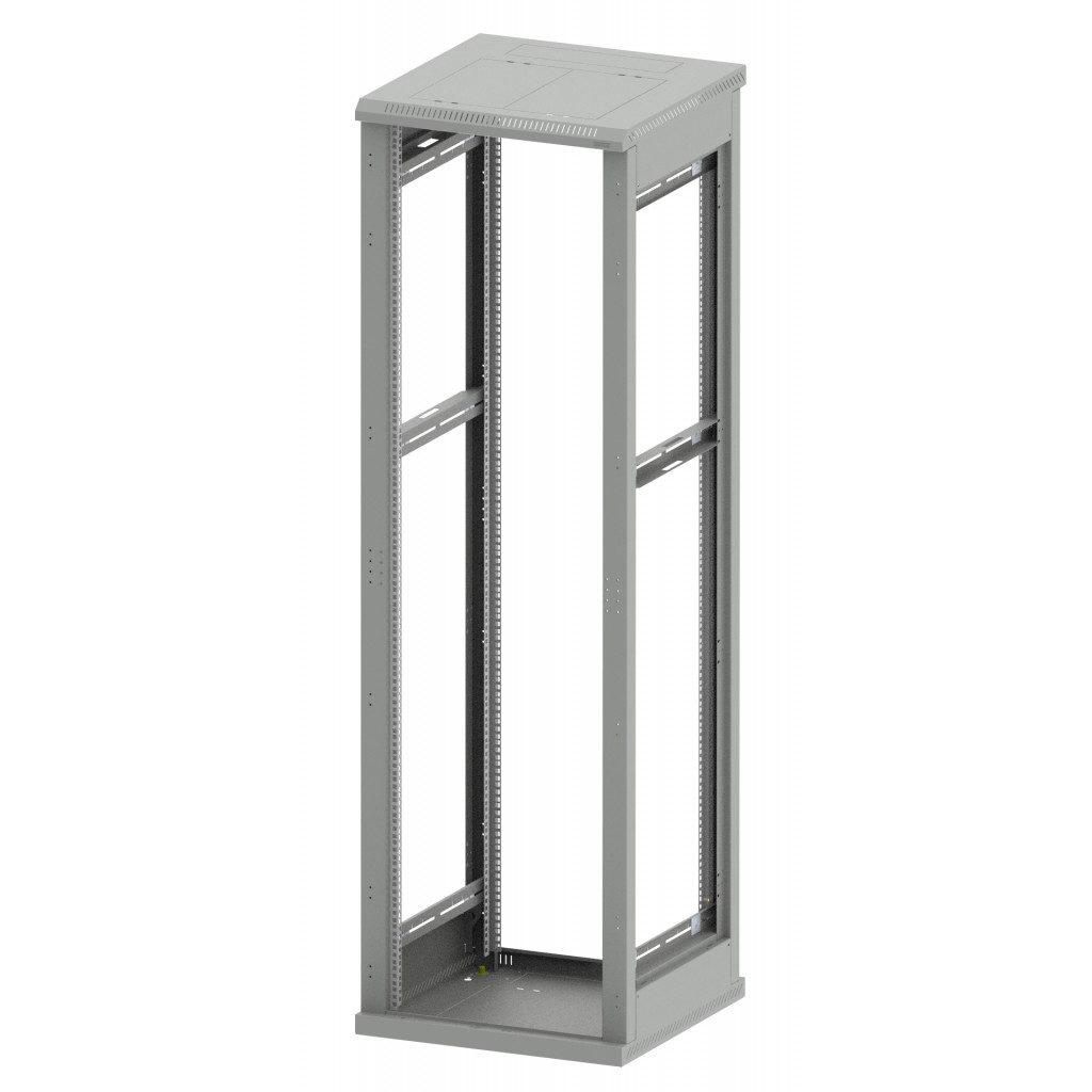 - Tåler 800 kg belastning - 4 stk. 19" profiler - Integrert sokkel - Dører og sideplater kan ettermonteres for å lage et skap - Helsveiset ramme støtter krav i NEK 700 / EN 50310