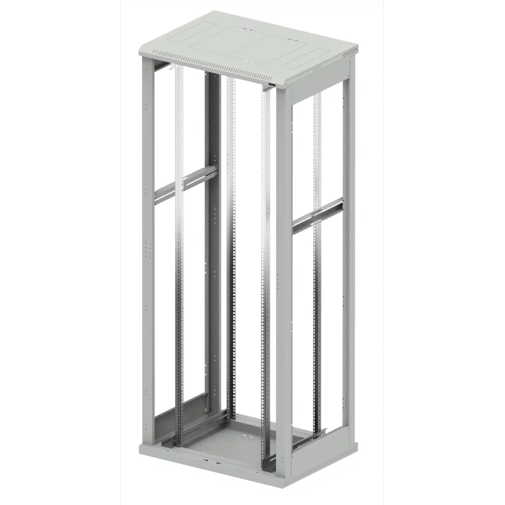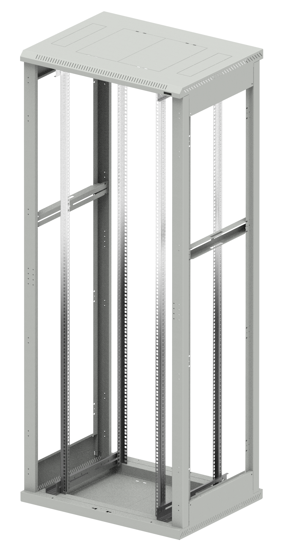- Tåler 800 kg belastning - 4 stk. 19" profiler - Integrert sokkel - Dører og sideplater kan ettermonteres for å lage et skap - Helsveiset ramme støtter krav i NEK 700 / EN 50310