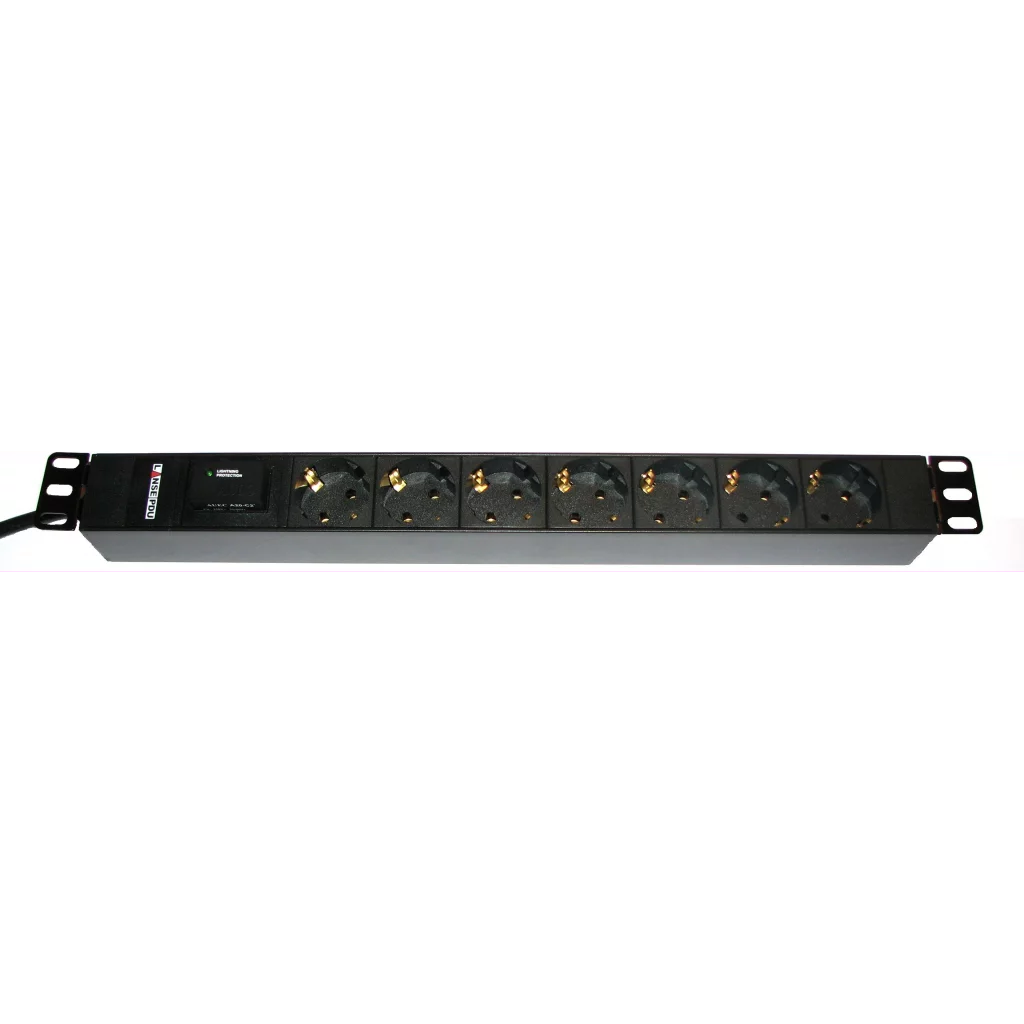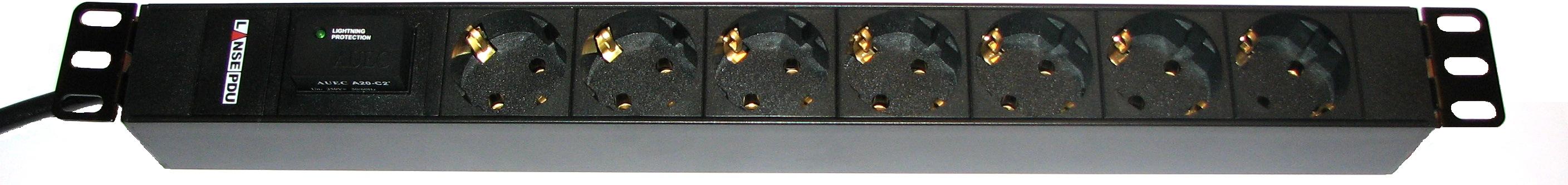 Lanse PDU Strømskinner med pluggbart overspenningsvern gir enklere og rimeligere drift med bytte av overspenningsmodul istedenfor hele PDU strømskinna. - Utganger: 7 x 16A 230VAC DIN kontakter - Inngang 230V/16A, 3m kabel med vanlig DIN støpsel - Fleksibel monteringsbrakett for montering foran, bak eller vertikalt - Power LED -