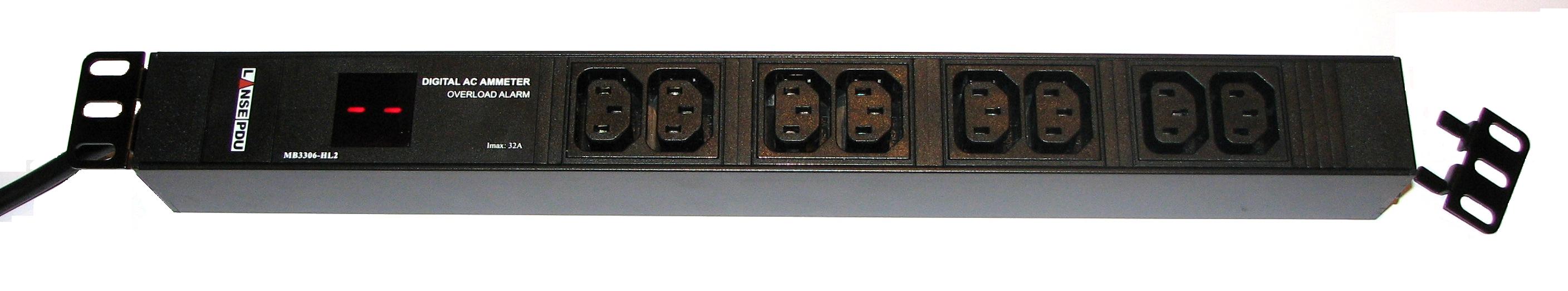 - PDU 19" Strømskinne 8x10A C13 Amp.meter, 3m