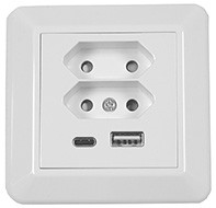 - USB Lader A+C 3A 2xEuro Innfelt Polarhvit