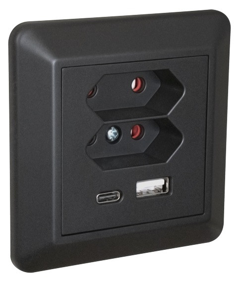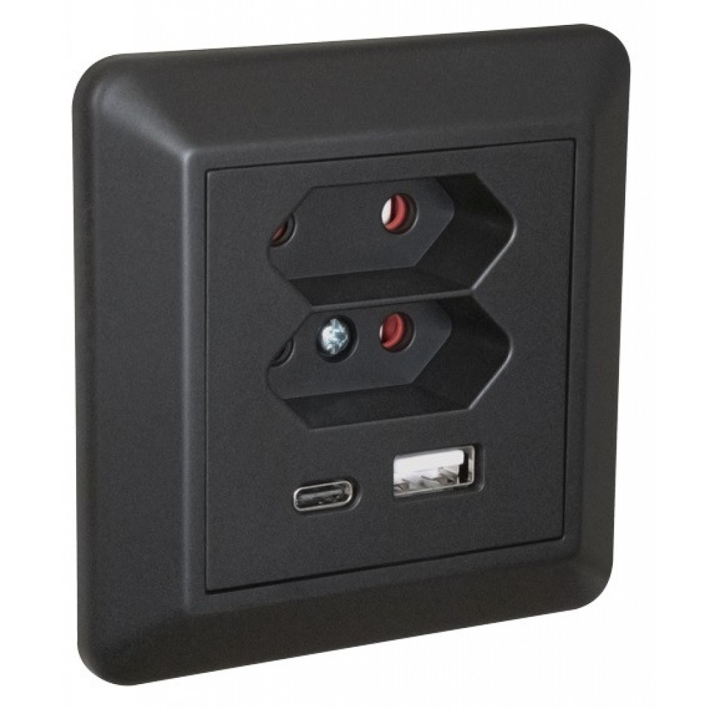 - USB Lader A+C 3A 2xEuro Innfelt Sort