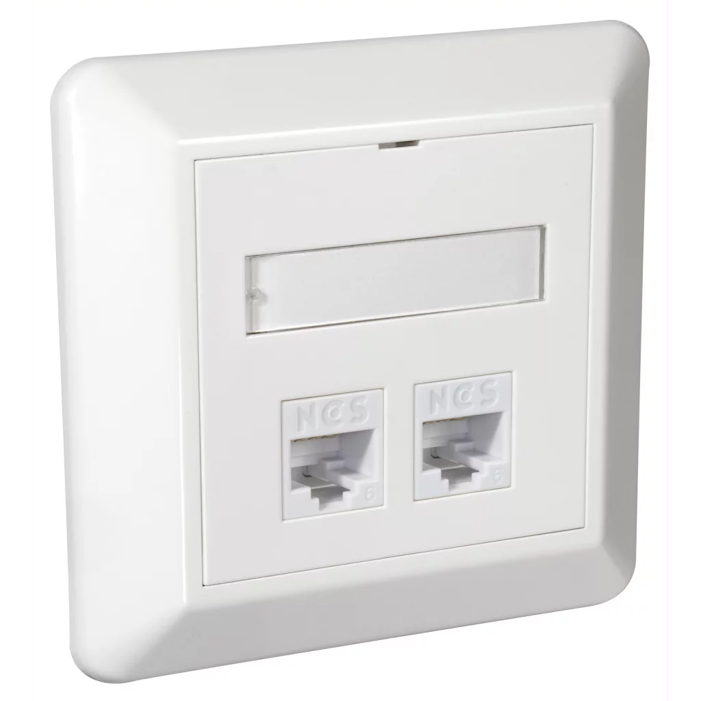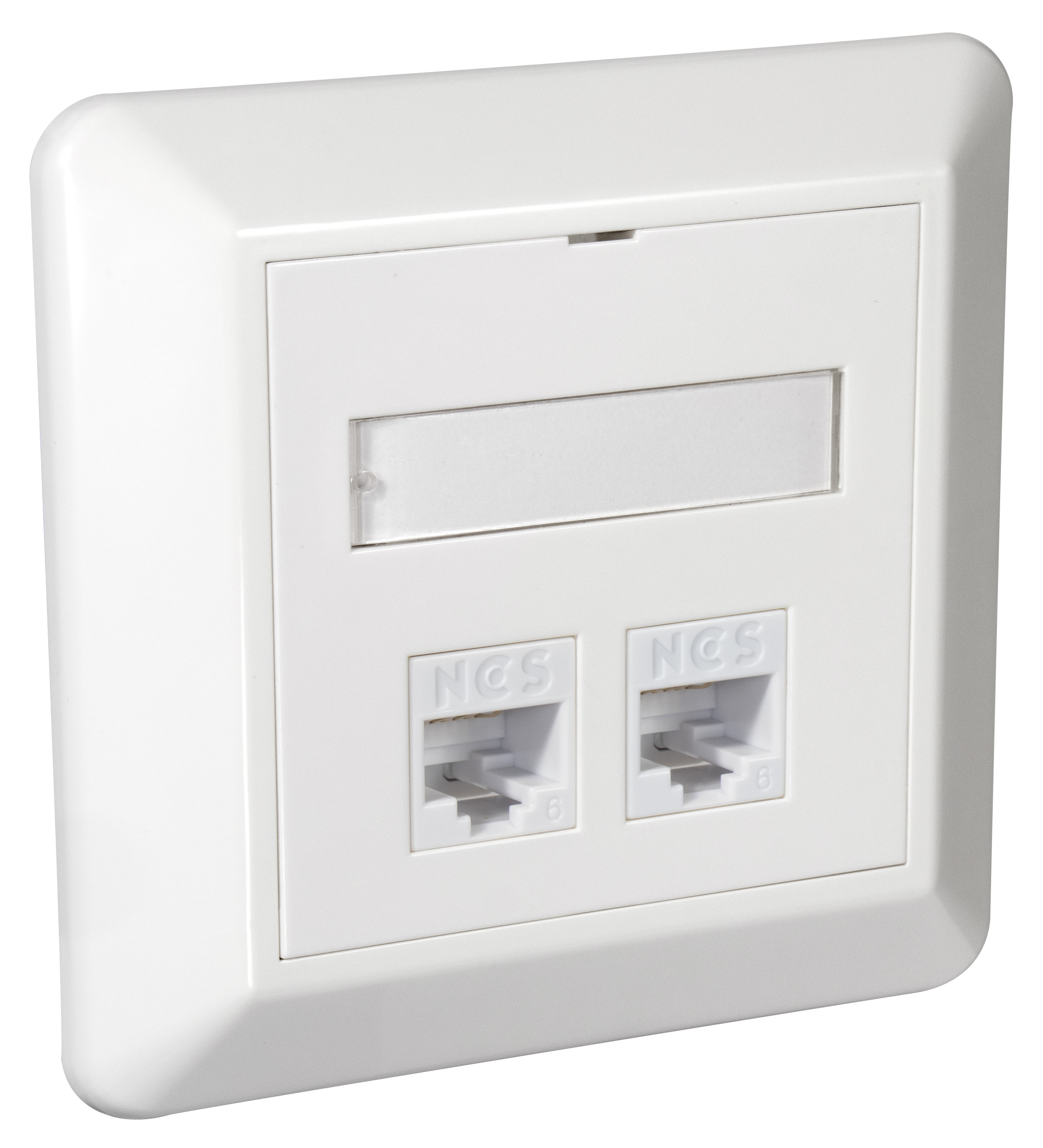 NCS Vegguttak QuickCompact for RS Polarhvit - QuickCompact Rask terminering på 1-2-3 - Termineringsverktøy forhindrer ubalanse i DCLR for sikker PoE - Støtter IEC 60512-99-002 mot skadelig lysbue for PoE opp til 90W / 2A - Senterplate passer i RS og Plus rammer og påveggskapper - Festes i kanal